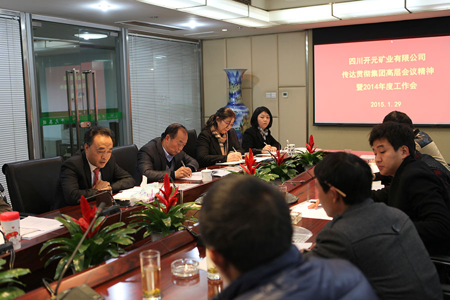 1月29日,開元礦業年終工作總結會在三樓會議室如期舉行,集團副總裁、開元礦業負責人李后蜀、萬天霞及各分公司、項目部負責人出席會議。會議主要傳達了集團高層會議精神,強調2015年度“穩健經營、精益管理、創新發展”的工作基調,同時就礦業公司2014年度工作開展情況、取得的成績以及存在的不足進行了深入剖析和探討,并結合各公司、項目部負責人工作匯報,重點對2015年度工作進行了詳細安排和部署。集團趙董事長親臨會場并對開元礦業2015年工作作出重要指示。