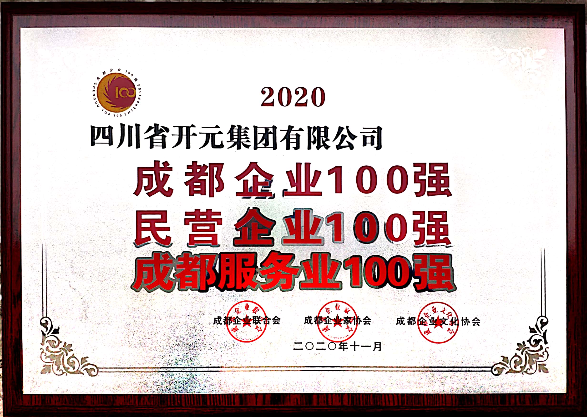 四川開(kāi)元集團(tuán)成功蟬聯(lián)2020年度“成都市企業(yè)100強(qiáng)”、“成都市服務(wù)業(yè)100強(qiáng)”和“成都市民營(yíng)企業(yè)100強(qiáng)”。