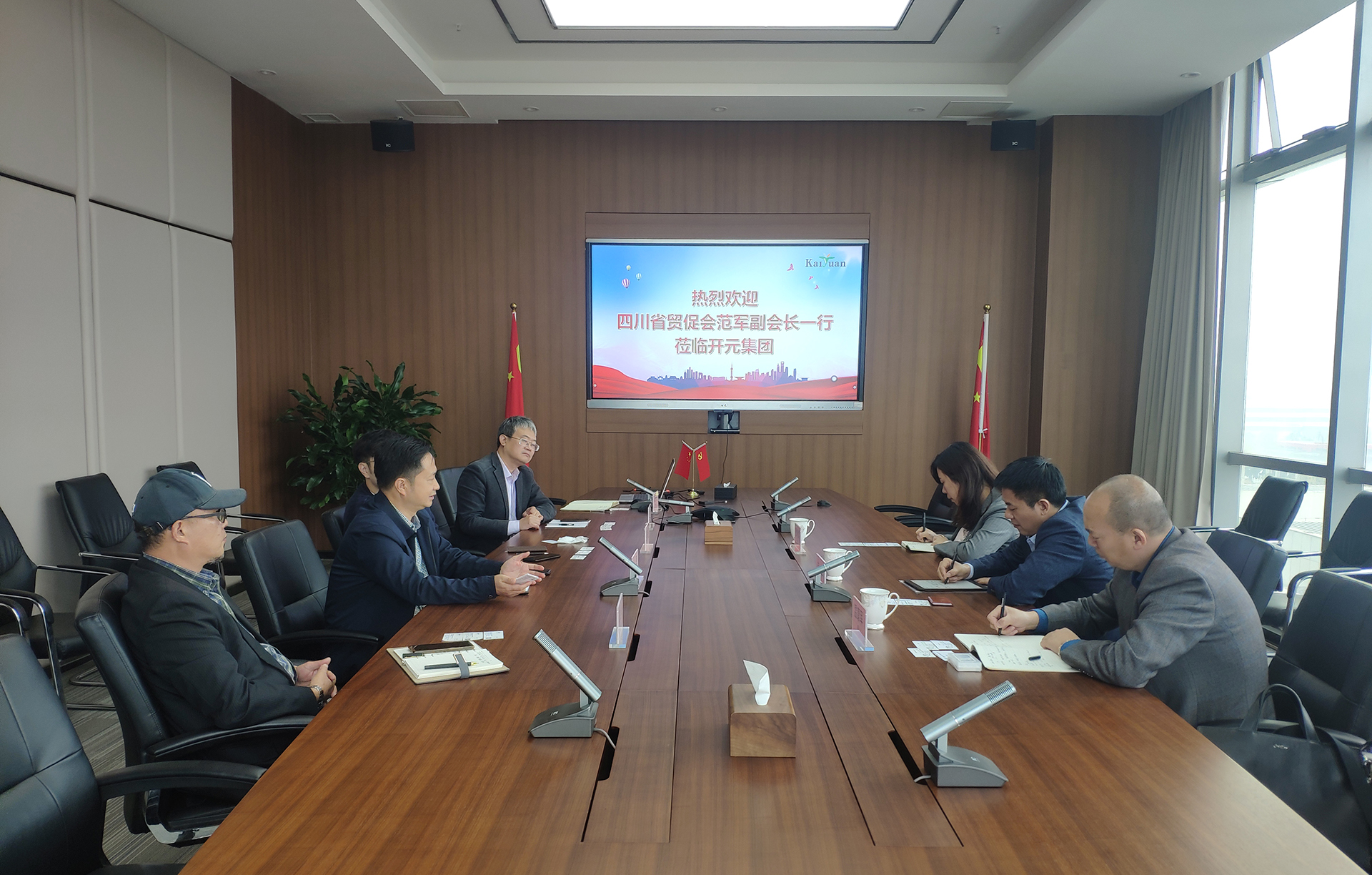 杜總為客人介紹了開元集團發展歷程,重點介紹了開元在對外經貿方面的業務經營情況和發展規劃,各貿易板塊負責人匯報了當前外貿業務過程中遇到的困難和障礙。杜總希望省貿促會能持續發揮好對外經貿領域的平臺作用,為企業排憂解難,助力企業健康可持續發展。
