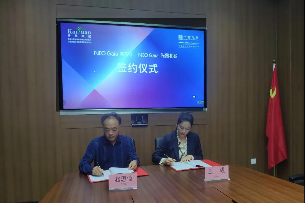 2021年10月29日,四川開元集團與中國建筑集團正式簽約,開啟NEO Gaia光霧和谷和NEO Gaia海花溝項目的戰略合作,開元集團董事長趙思儉與中建地下空間有限公司副總經理王成共同簽署了合作框架協議,標志著開元與中建的文旅項目合作正式進入實施階段。未來,項目將由中國建筑行業最強企業承建。