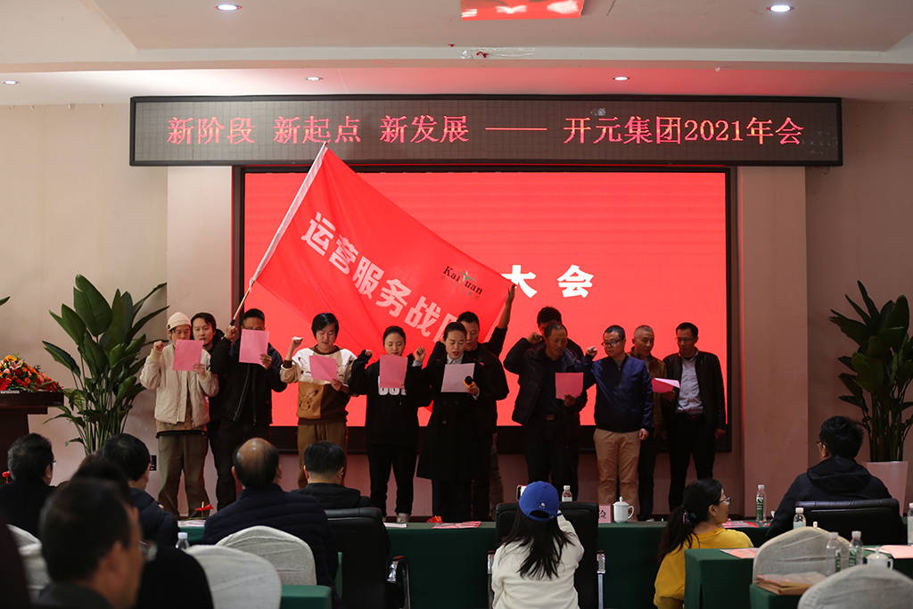 會議在全體開元人莊嚴的國歌聲中正式拉開帷幕。集團總裁杜勇先生代表集團領導班子向大會作《集團2021年度工作總結及2022年工作規劃》的報告,報告主題為“筑牢生存根基 積蓄發展動力 在新的起點上加快推動集團發展行穩致遠”。